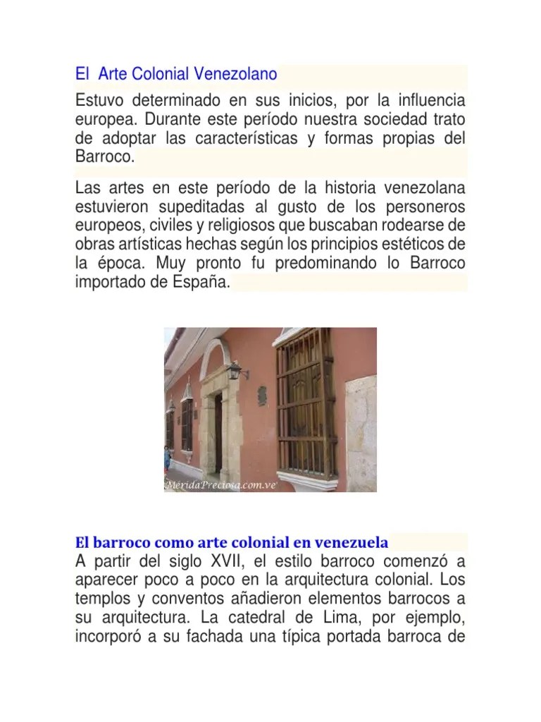 La presentación está en las situaciones. La arquitectura colonial en venezuela se empieza a construir en el siglo xvi cuando venezuela se convierte en colonia de españa y termina en 1810 aunque muchas construcciones aun se mantienen hoy en día. Por ello, las edificaciones eran sencillas, cómodas y espaciosas. Sin duda hubo una influencia indígena en el modelo de construcción europeo en venezuela, que a su vez ya. La arquitectura colonial en venezuela se empieza a construir en el siglo xvi cuando venezuela se convierte en colonia de españa y termina en 1810 aunque muchas construcciones aun se mantienen hoy en día.. La presentación está en las situaciones.
